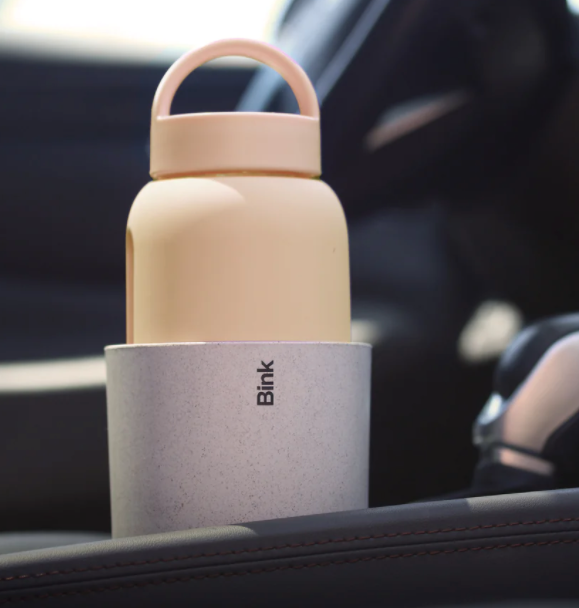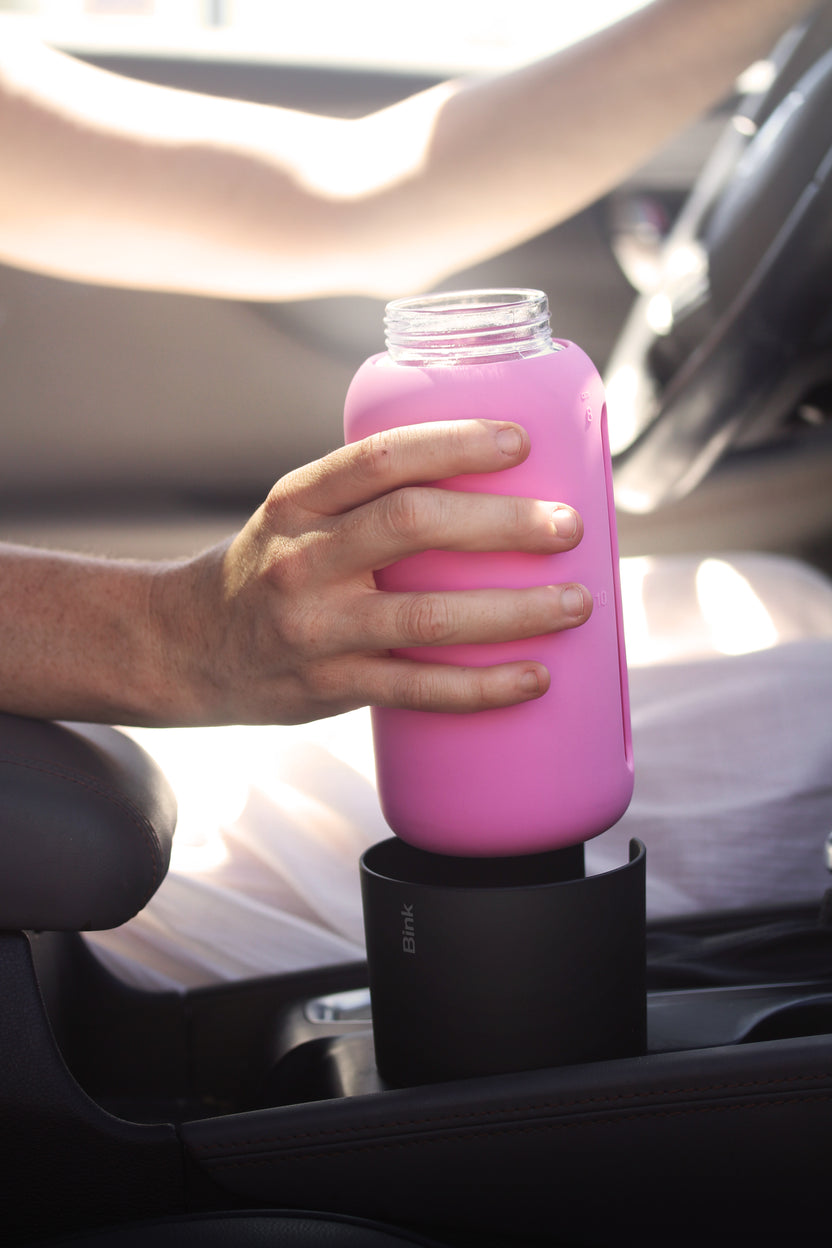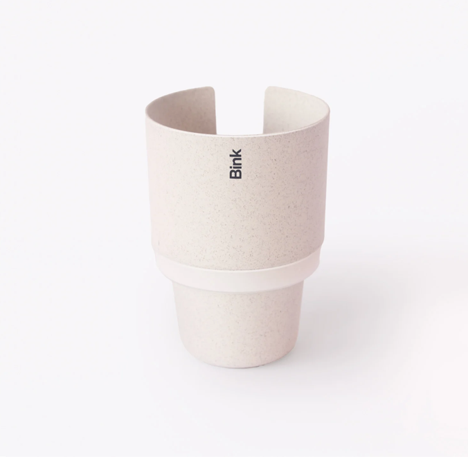 A unique compression-fit car cup holder. Compatible with Bink Day, Mama & Mini Bottles as well as most large water bottles, tumblers and mugs. Made using a zero-waste manufacturing process & recycled plastic