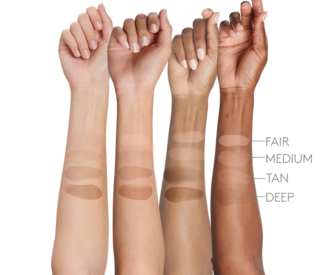 Available in four uniquely flexible shades, each ideal for a broad range of skin tones and under tones. Safe for all skin types, including sensitive.