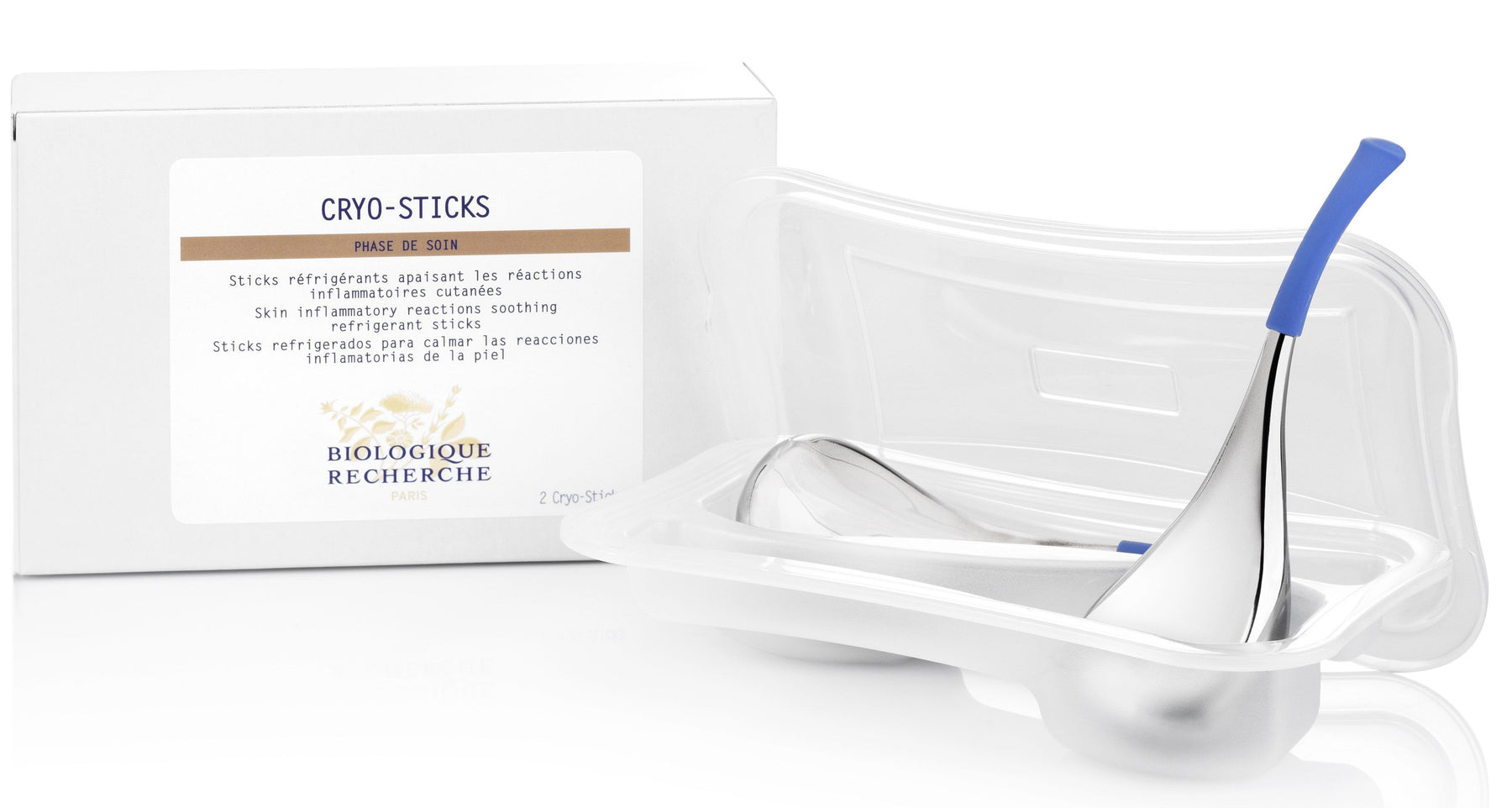 Designed in stainless steel with cooling properties, Cryo-Sticks are used in case of redness during treatment. Stored in the refrigerator or in a basin filled with ice cubes, Cryo-Sticks store maximum thermal energy, ensuring cold is diffused in contact with the skin throughout treatment. In addition, their ergonomic form moulds to the contours of the skin, enabling them to work effectively on every area.