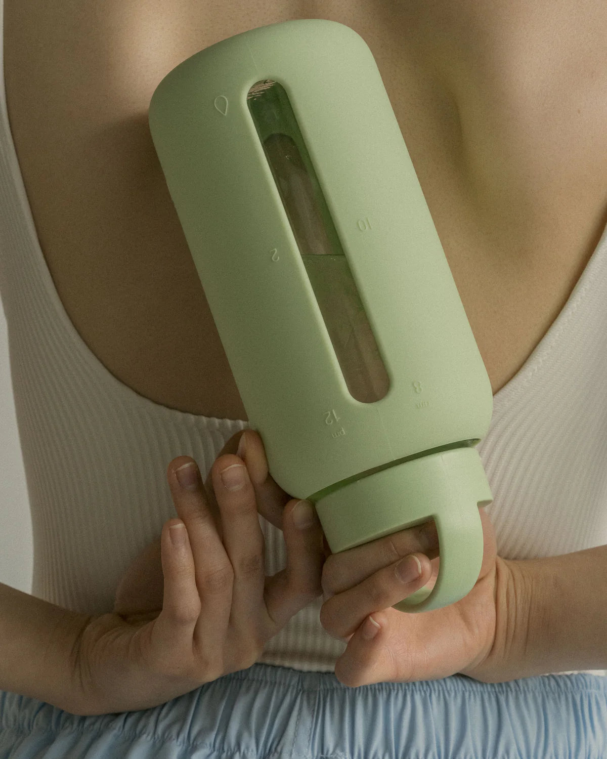 A simple glass water bottle with hydration tracking designed to help you meet your daily recommended water needs. Because your health is your greatest asset, and drinking enough water should never feel abstract or unattainable.