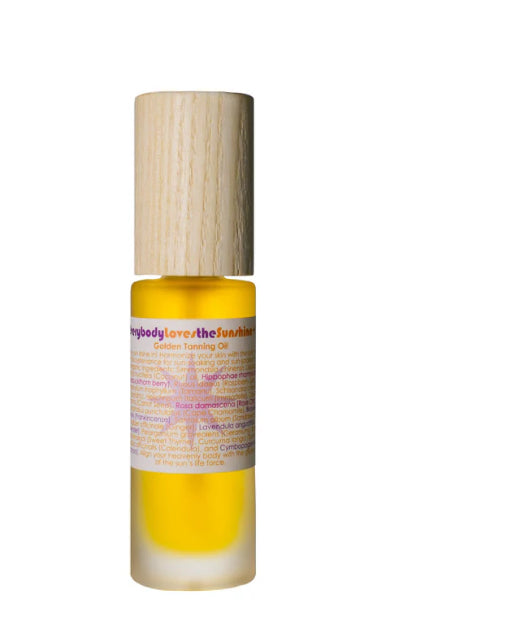 Directions: Apply before heading outside and again after a day of play to glean every benefit from these pearls of plant wisdom. Please note that healthy time in the sun ranges for everyone depending on their skin type, base tan level and geographical location. Our Everybody Loves the Sunshine body oil harmonizes to skin to the sun’s rays for a golden tan yet it is not a sunblock. Additionally, this lovely liniment may be used to wash the face just as our Best Skin Evers may be used to cleanse with oil.
