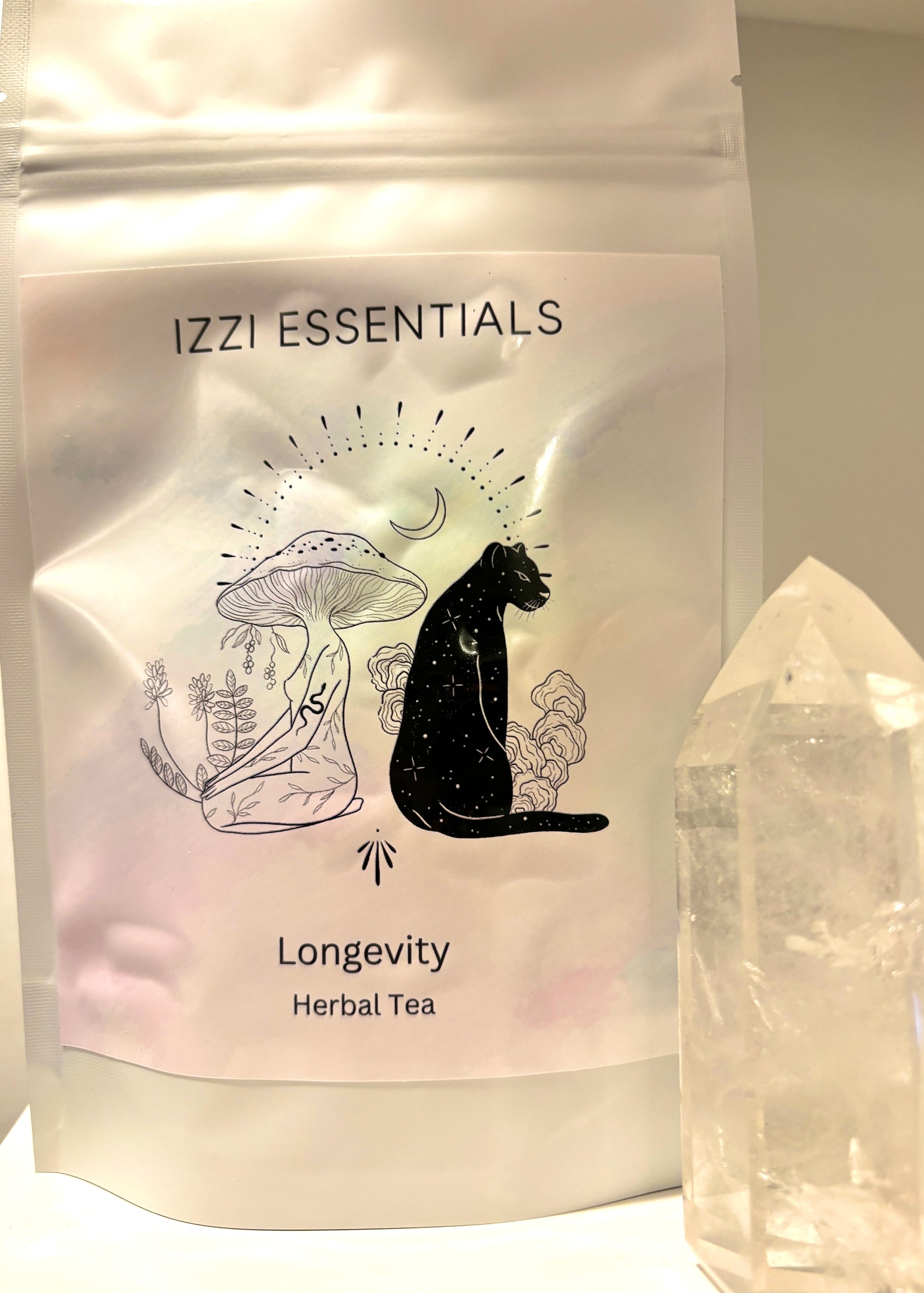 Izzi Essentials Longevity Herbal Tea is a handcrafted and herbalist designed specialty herb blend offered at The Nest Clinic. Longevity blend combines potent ingredients that work synergistically to enhance energy, boost immune function, and promote overall wellbeing and health.