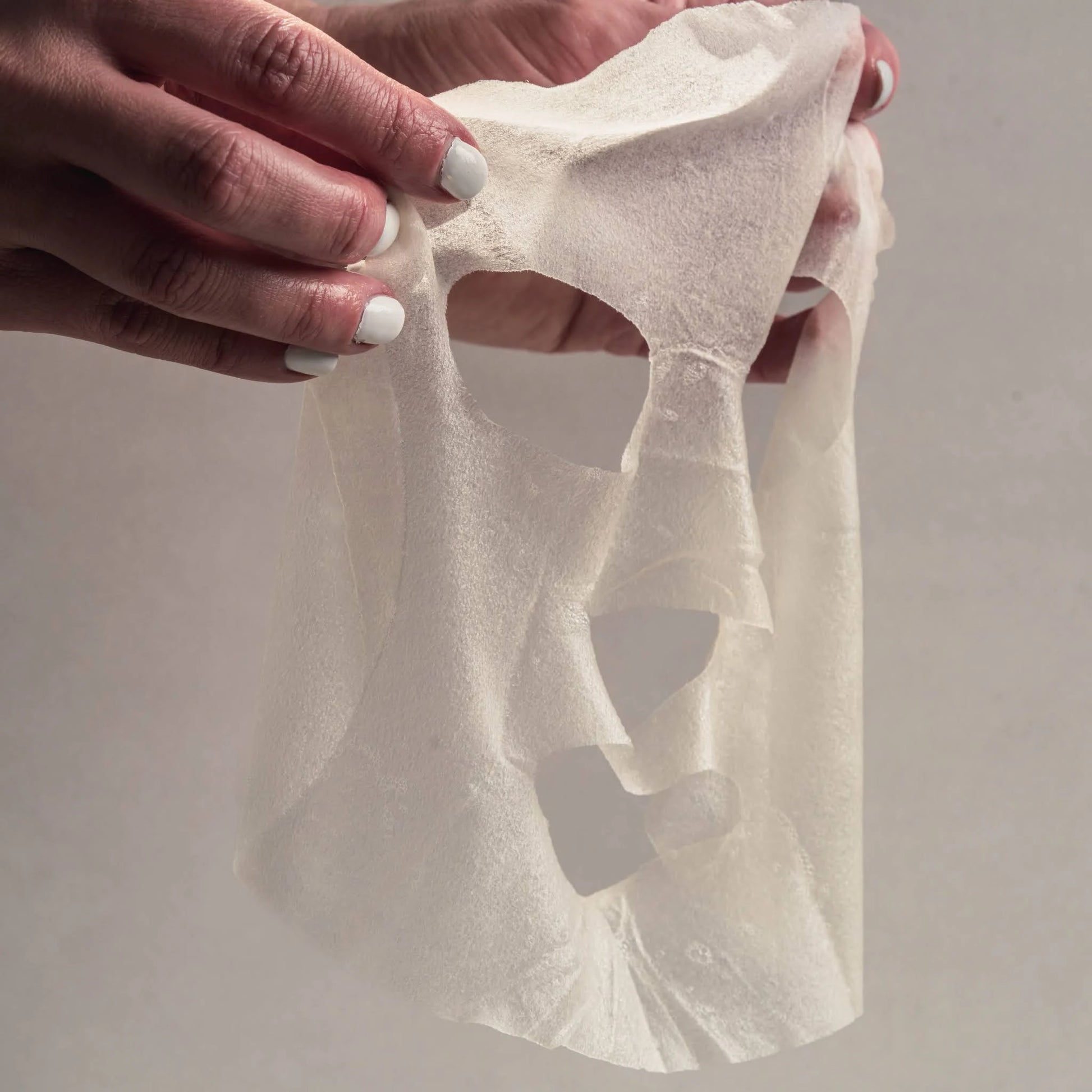 4. Smooth the mask down with your fingertips so it adheres perfectly to the facial contours