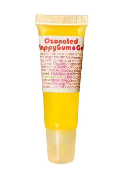 Open wide for ozone! Living Libations Ozonated Happy Gum Gel is a super-charged, botanical toothpaste, massage gel for your gums, and a zingy breath freshener. Add a drop to floss or smooth on the lips for an atmospheric shine.